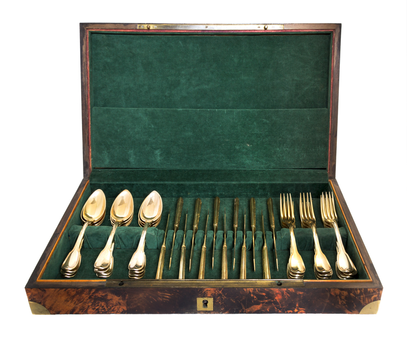 An Important Empire Silver-Gilt Flatware Service