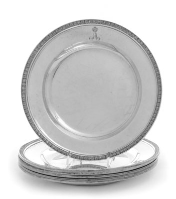 each with an anthemion border and engraved script A beneath a coronet, presumably for Duchess Amelia of Wurttemberg.