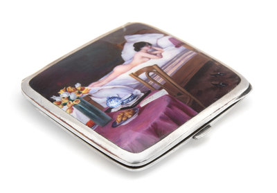 A Continental Enameled Silver-Plate Cigarette Case