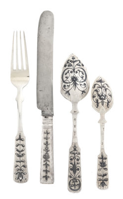 A Russian Niello Silver Dessert Service