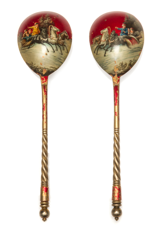 A Pair of Russian Enamel Silver Spoons