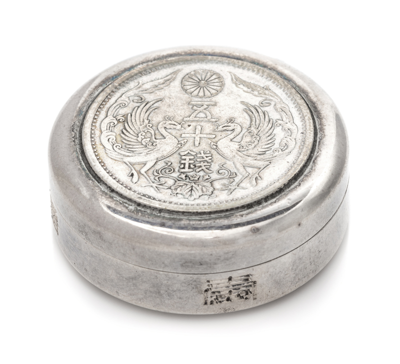 the lid and base with inset 20 sen coins.