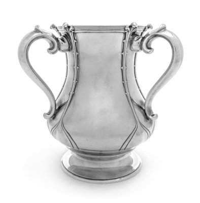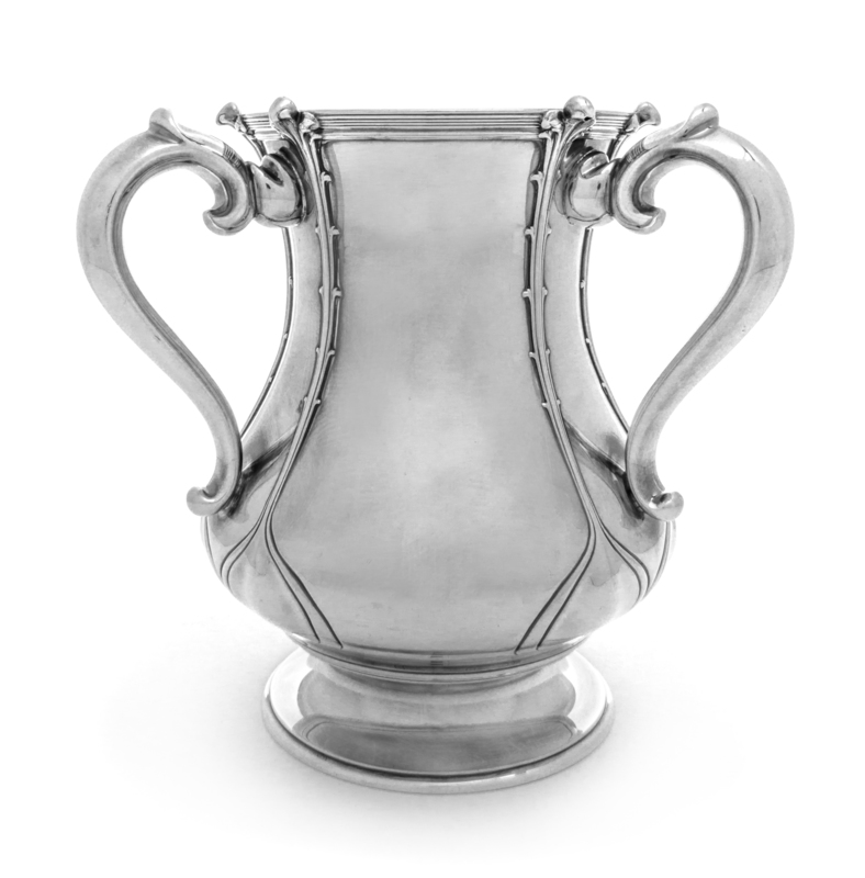 with applied stylized vines and a gilt interior, raised on a circular foot.