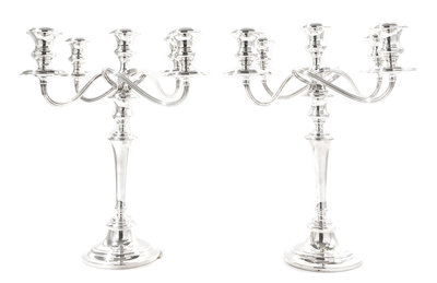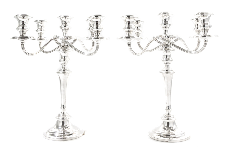 each having four serpentine branches issuing from a tapering stem, raised on a trumpet form base, weighted.