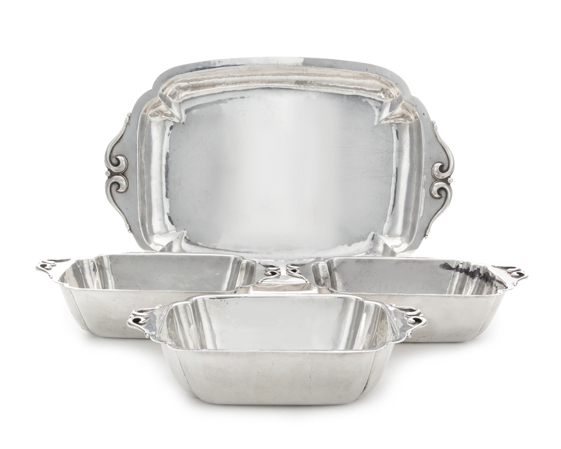 A Set of Three American Silver Vegetable Dishes and Matching Tray