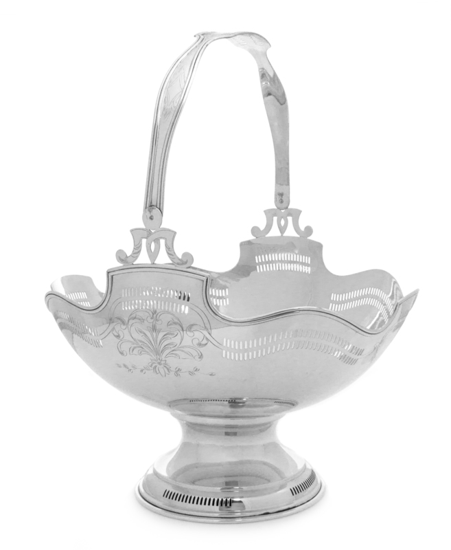 of ovoid form, both the handle and body worked to show floral spray and foliate motifs.