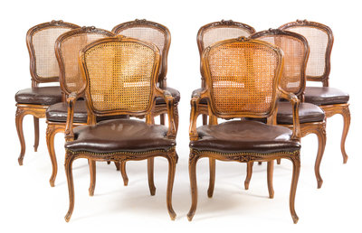 A Set of Eight Louis XV Style Walnut Dining Chairs