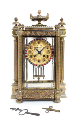 A French Gothic Revival Gilt Bronze Mantle Clock