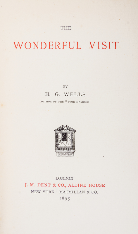 The wonderful visit. London: J. M. Dent, 1895. First edition.Red cloth boards (20 cm. tall), with gilt-stamped design. With sinister bookplate to front pastedown.