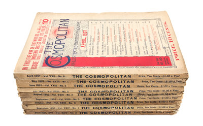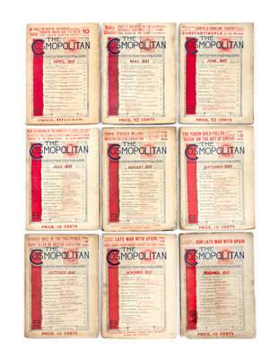 The war of the worlds, as it first appeared serially in the United States across nine issues of The cosmopolitan; April - December, 1897.Nine issues, bound in illustrated wrappers; remarkably well-preserved in their original un-restored state, with only minor soiling and creasing. Individual bindings remain fresh. Housed in custom-made clamshell slipcase. With illustrations by Warwick Gobel.Published simultaneously by Pearson's magazine in Great Britain, this appearance preceded the 1898 book publication by a year.