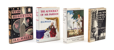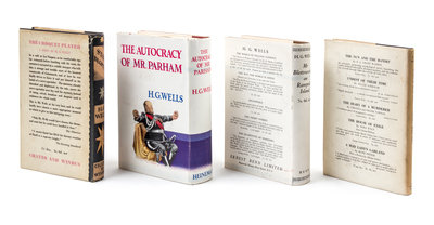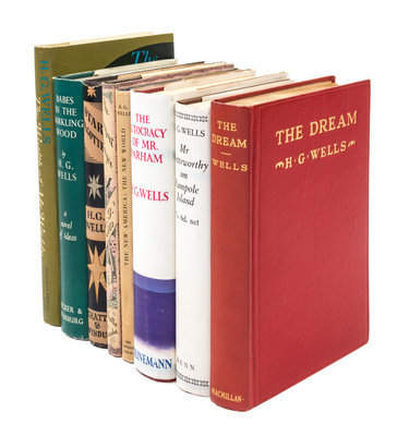 A group of eight works from Wells (published in London, unless noted): (1) The dream. New York: The Macmillan Company, 1924; (2) Mr. Blettsworthy on Rampole Island. Bouverie House, 1928; (3) The autocracy of Mr. Parham. William Heinemann, 1930; (4) The new America. The Cresset Press, 1935; (5) The croquet player. Chatto & Windus, 1936; (6) The star begotten. Chatto & Windus, 1937; (7) Babes in the darkling wood. Secker & Warburg, 1940; and (8) The wealth of Mr. Waddy. Southern Illinois University Press, 1969.