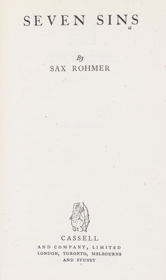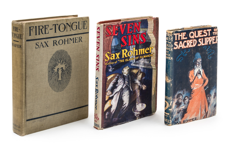 A group of three works by Sax Rohmer, including: The quest of the golden slipper, 1919 (in jacket); Fire tongue, 1922; and Seven sins, 1944 (in jacket).