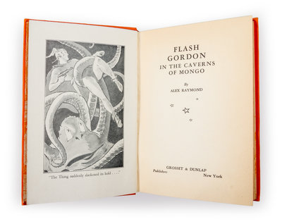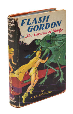 Flash Gordon in the caverns of Mongo. New York: Grosset & Dunlap, 1936. First edition.Orange cloth boards (19 cm. tall). Full jacket lightly worn at edges, with several mended tears. Otherwise, an exceptionally bright and clean copy.