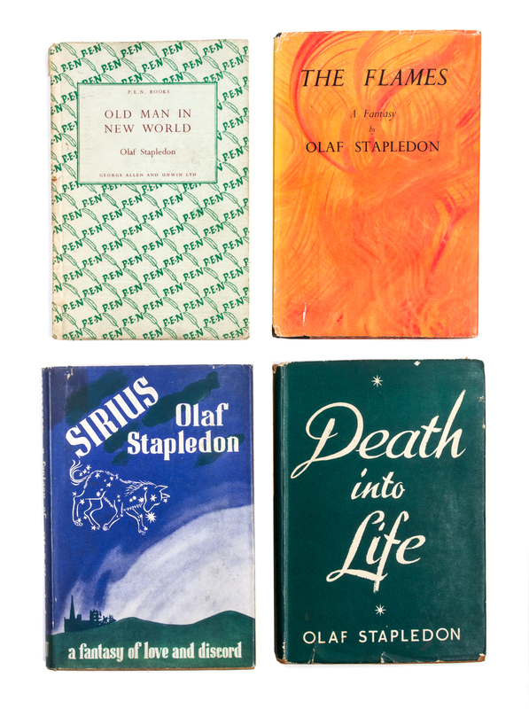 Four works, all published in London; all but the last in jackets: (1) The flames: a fantasy. Secker & Warburg, 1937; (2) Sirius: a fantasy of love and discord. Secker & Warburg, 1944; (3) Death into life. Methuen, 1946; (4) Old man in new world. George Allen and Unwin, 1944.