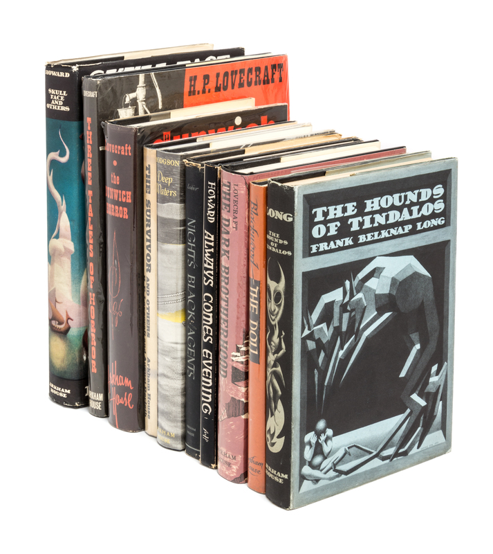 A group of 17 early works published by Arkham House in jackets, from 1946 to 1967, including: Robert Bloch, The opener of the way, 1945 (inscribed); Robert E. Howard, Skull-face and others, 1946 (with characteristic Hannes Bok jacket); Frank Belknap Long, The hounds of Tindalos, 1946; and Fritz Leiber Jr., Night's black agents, 1947.