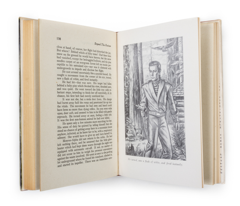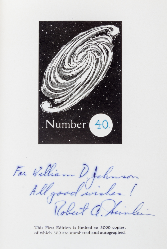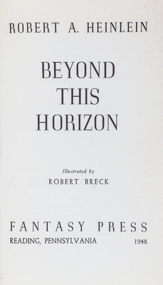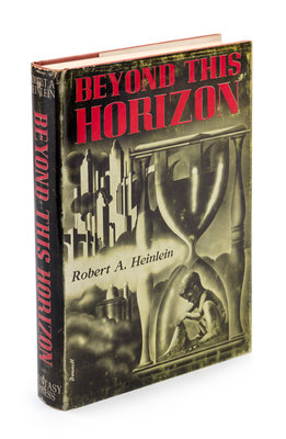 Beyond this horizon. Reading, PA.: Fantasy Press, 1948. First edition; number 40 of 500 signed copies.Decorative cloth boards (21 cm. tall), with fulll jacket showing some scuffing. Ownership stamp to front pastedown. Signed by Heinlein on limitation page.