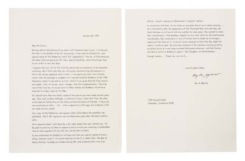 Typescript of Way Up in the Air. Together with an autographed letter signed by Roy Squires.