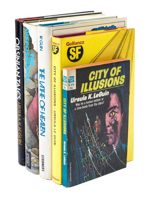 A group of five works, including: (1) City of illusions. New York: Ace Books, 1967; (2) City of illusions. London: Victor Gollancz, 1971; (3) The Lathe of Heaven. New York: Charles Scribner's Sons, 1971; (4) The Dispossessed. New York: Harper and Row, 1974. First edition, first printing, with $7.95 price to dust jacket. (5) Orsinian tales. New York: Harper & Row, 1976.