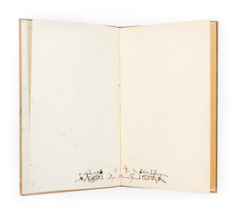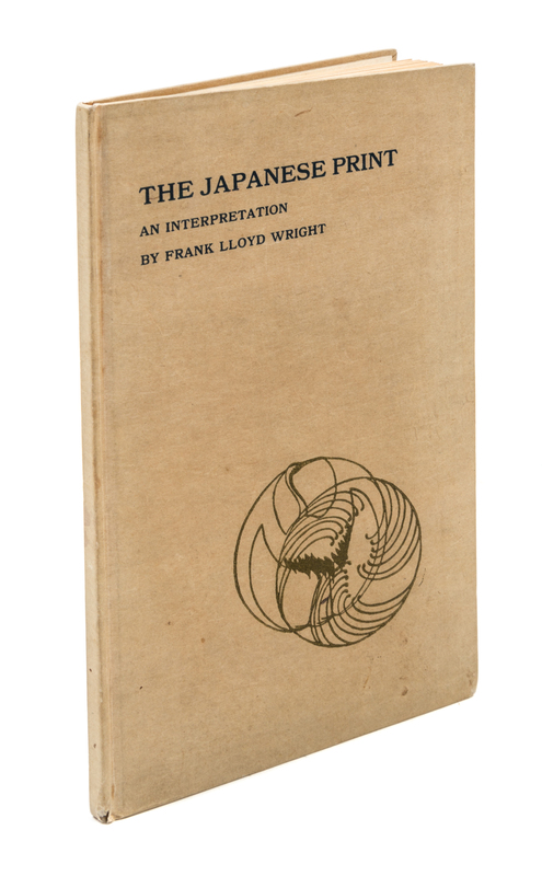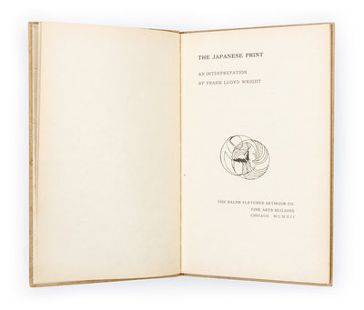 The Japanese print: an interpretation. Chicago: The Ralph Fletcher Seymour Co., 1921. First edition, signed.Illustrated boards (21 cm. tall), with blue lettering and olive Crane device, repeated on title page, with copyright statement printed on verso. Inscribed by Wright on front endpaper.