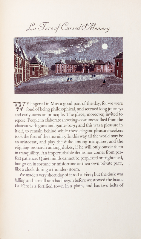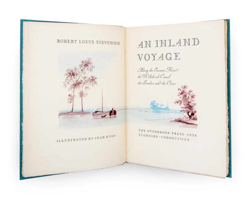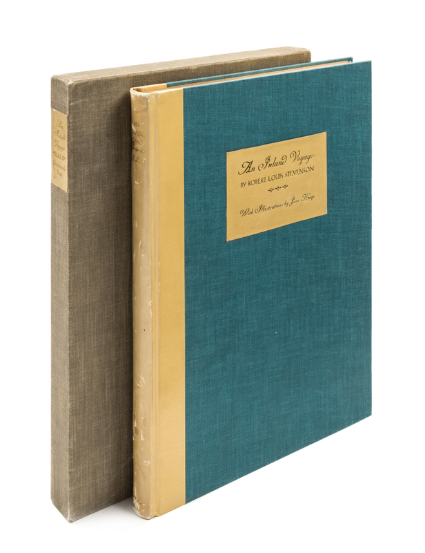 An inland voyage: along the Escaut river, the Willebroek canal, the Sambre and the Oise. Stanford, CT: The Overbrook Press, 1938. One of 150 copies. Half-leather over cloth boards, in slipcase. Illustrated by Jean Hugo.
