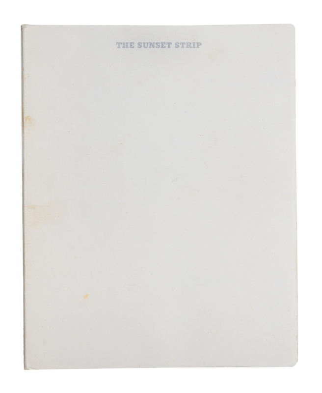 Every building on the sunset strip. Los Angeles: self-published, 1966. Second edition; one of 5000 copies.Accordion-style wrappers (18 cm. tall), with light soiling to spine and front cover, otherwise a clean copy. Accompanied by slipcase and enclosing foil jacket preserved in remarkable condition.