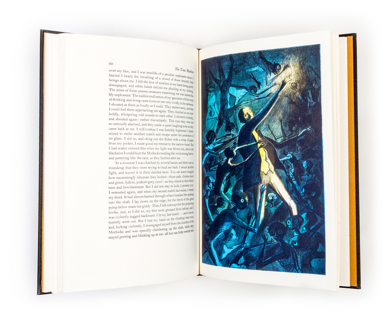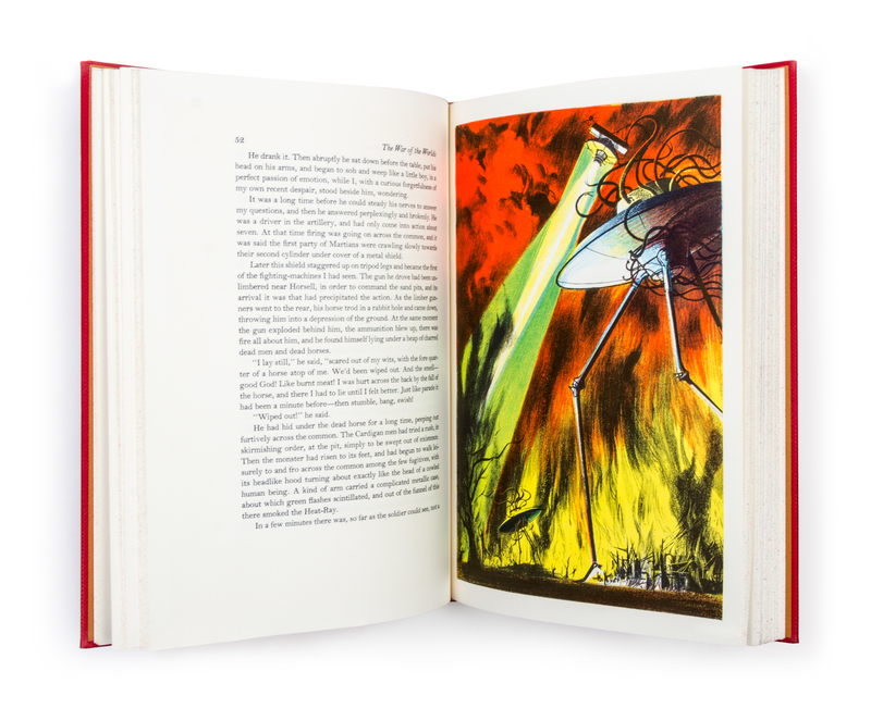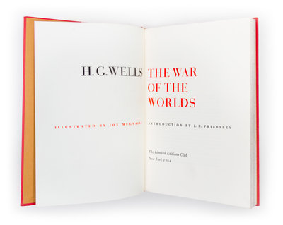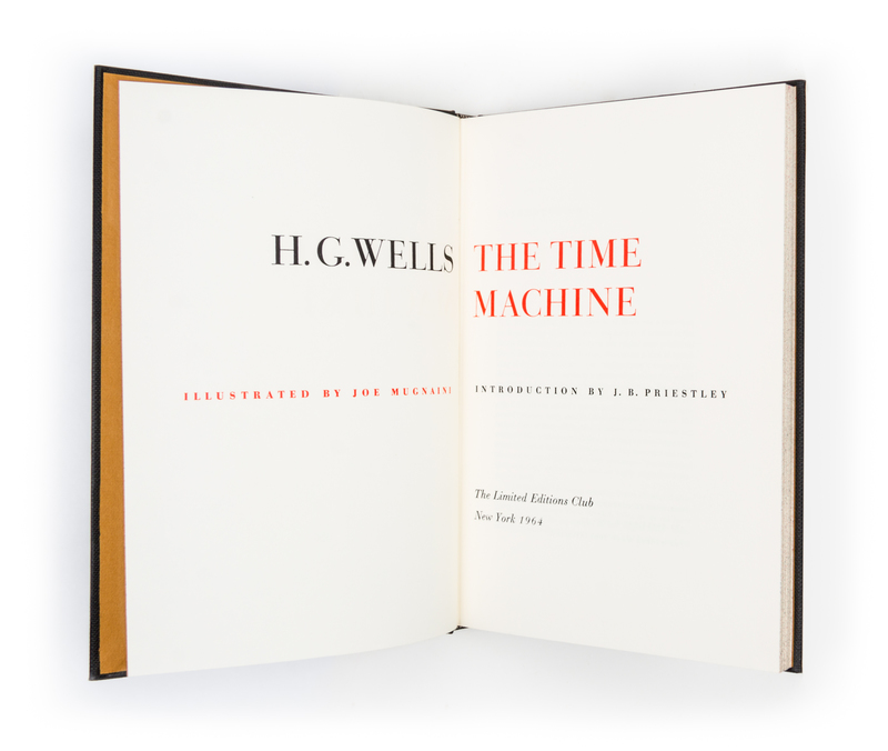 [Two works from Wells, as illustrated by Mugnaini]. New York: Limited Editions Club, 1964. First editions thus. Cloth boards (26 cm. tall), with blind-stamp to front panels and gilt lettering to spines. The time machine, with an introduction by J. B. Priestley. Illustrated wth six color plates from Mugnaini. Together in slipcase with The war of the worlds, also introduced by Priestley, with ten colour plates from Mugnaini.
