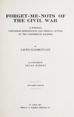 Forget-Me-Nots of the Civil War. Press A. R. Fleming Printing Co., 1909.Dark red cloth board ( 20cm. tall) with gilt stamped title. Front hinge starting; edgewear; corners bumped and rubbed.
