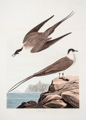 Fork-tailed Petrel, Thalassidroma Leachii, plate CCLX, No. 52. Engraving (45 x 62 cm., sheet), with etching, aquatint, and hand-coloring from the Havell edition of The Birds of America, 1834. Matted.