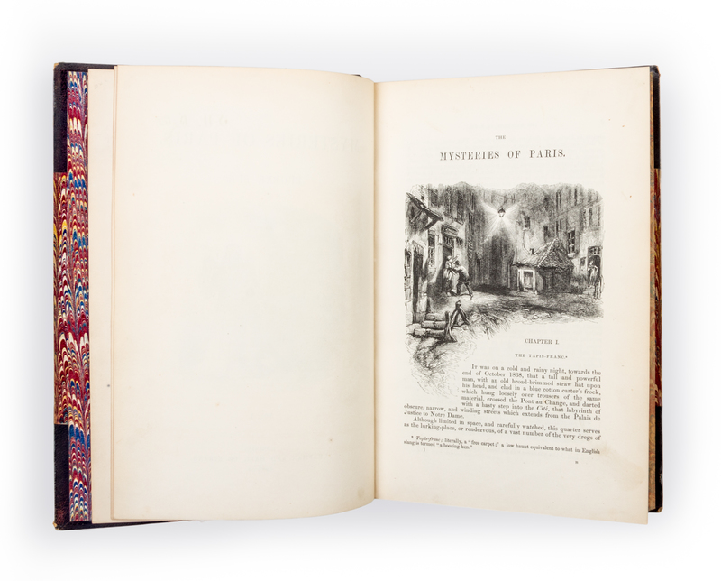 Two illustrated works published by Chapman and Hall: The wandering jew (1844) and The mysteries of Paris (1845).Six volumes total; handsomely-bound in mid-nineteenth century leather boards. With dozens of atmospheric illustrations throughout the works. The mapping of alternative cities.