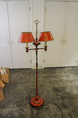 A Regency Style Tole Painted Two-Light Floor Lamp
