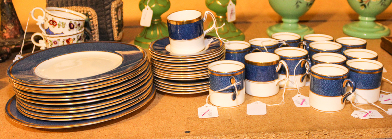 comprising fourteen cups, fourteen saucers, ten dessert plates and an associated dinner plate.