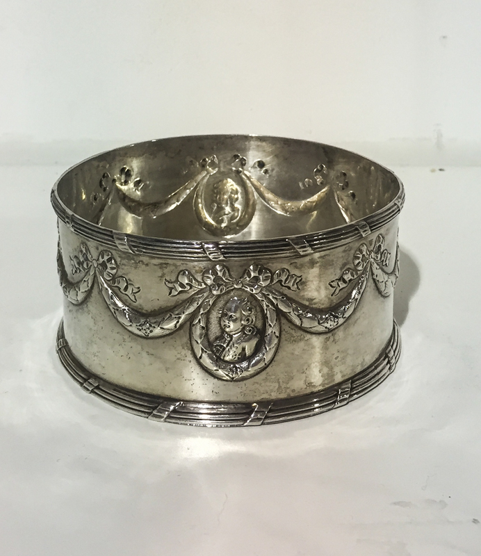 chased with garlands suspending portrait medallions above a tied reeded border.