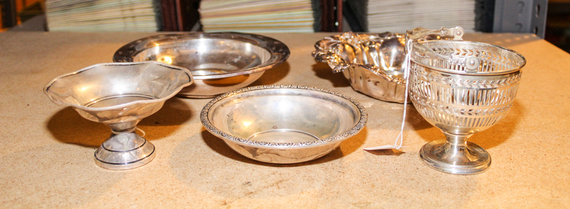 comprising a foliate decorated bowl, a Gorham bowl, an International Sterling: Prelude pattern bowl, a weighted bowl with undulating rim and a pierced basket.