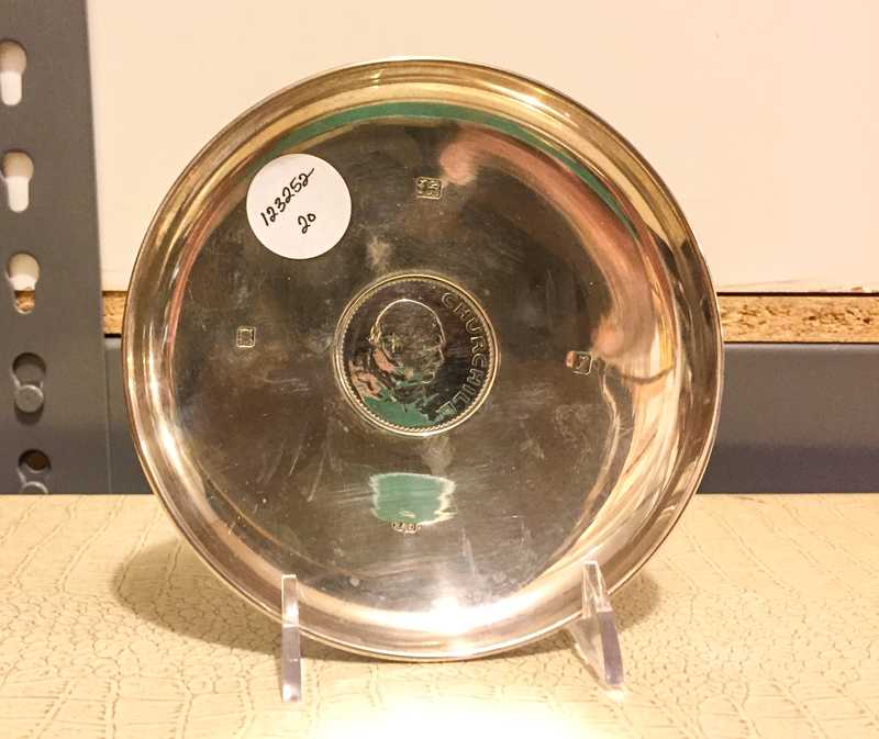 with an upturned rim, centered by a Winston Churchill silver coin.