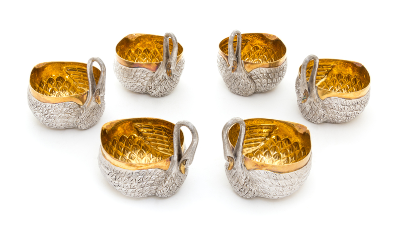 each in the form of a swan with gilt interiors, marked "Made in Mexico."
