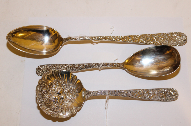 comprising a stuffing spoon, a vegetable serving spoon and a berry server.