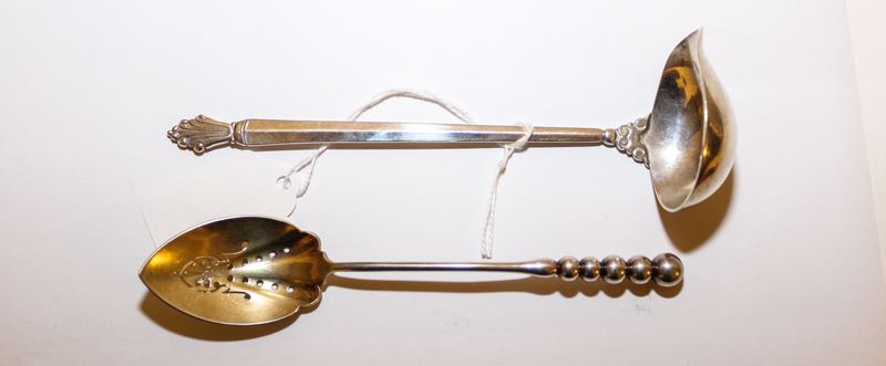 in the Acanthus pattern, together with an American pierced spoon, probably Alphonse Lapaglia, marks rubbed.