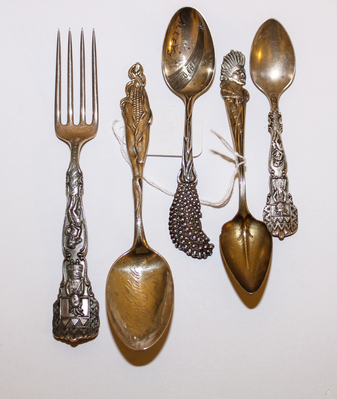 A Group of Five Silver Souvenir Spoons and Forks