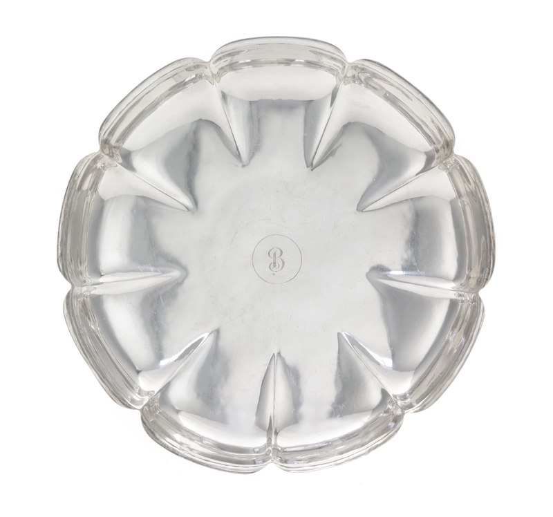 of shallow, lobed circular form, the center engraved with the initial B within a circle.