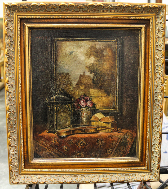 Still Life with Painting, Clock, Vase, Books and Violin