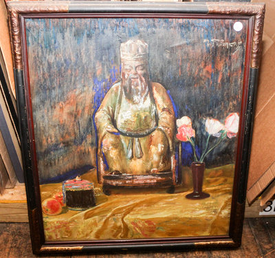 Still Life with Asian Figure, Flowers, Ink Pot and Fruit