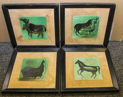 Four Cave Painting Style Animal Tiles