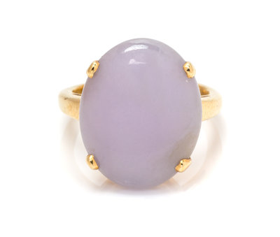 containing one oval cabochon cut lavender jadeite jade measuring approximately 17.38 x 13.96 x 3.93 mm.