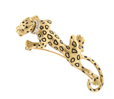 A Yellow Gold, Diamond and Resin Panther Brooch,