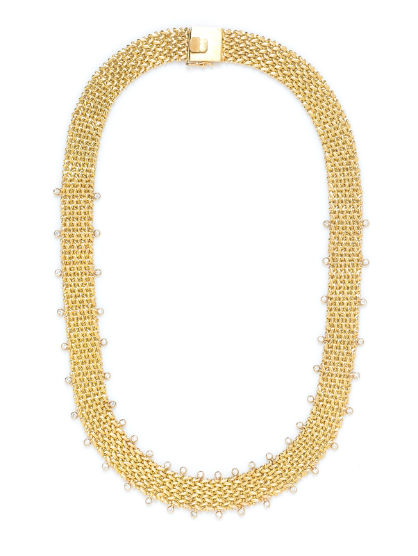A 14 Karat Yellow Gold and Diamond Mesh Necklace, Esther Gallant,