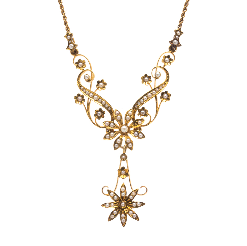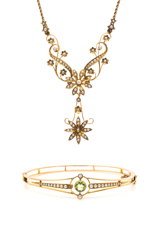 A Collection of Art Nouveau Yellow Gold and Seed Pearl Jewelry,