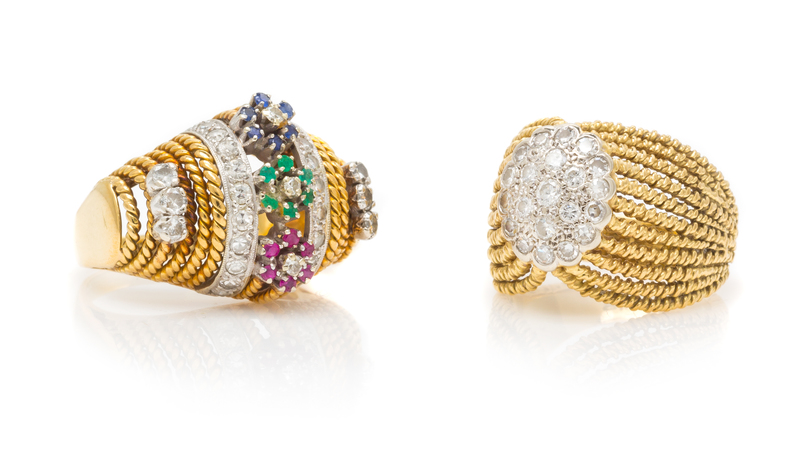 A Collection of 18 Karat Yellow Gold and Diamond Rings,