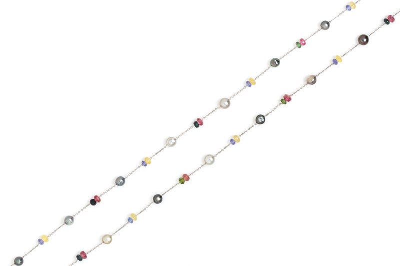 A Platinum, Cultured Pearl and Multigem Longchain Necklace,
