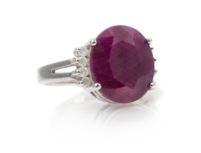 A 14 Karat White Gold, Ruby and Diamond Ring,