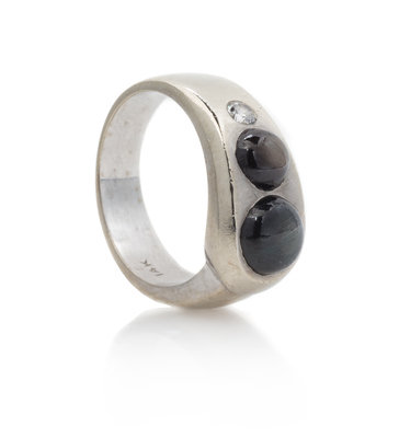 A 14 Karat White Gold, Star Sapphire and Diamond Ring,